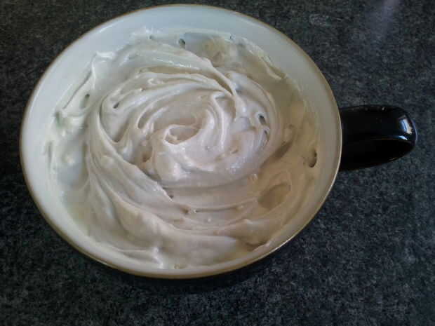 Necesita - mousse de chocolate, topping, relámpagos, palillo de dientes, alimentos negro colorante pasta (no líquido), cuchillo. Monte - 1. Llevar la mousse de chocolate de la nevera. 2. cuchara el relleno uniformemente y suavemente sobre las dos tazas de café. 3. toma un palillo de dientes y algunos colorantes de comida negra y girelo suavemente en el mousse blanco. No utilice demasiado. 4. Tome un cuchillo y se usa para agitar el colorante en el relleno, para crear una 'nube' swirly ligeramente gris. 5. Añadir los relámpagos a su taza, usar tantos como quieras. 6. sirva inmediatamente o volver a colocar en la nevera, lista para servir.