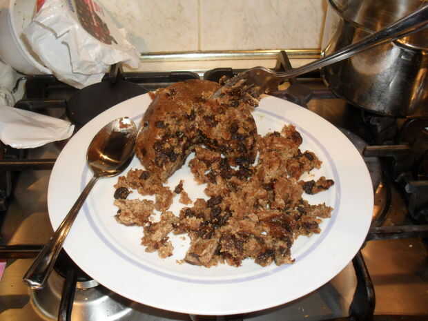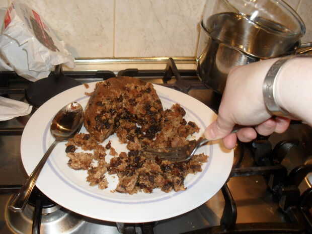 Bien lo que puedo decir... Si su posh, tirada tu pud de Navidad en un procesador de alimentos a la miga para arriba... Sólo usé un tenedor... Hizo el truco... FINALMENTE