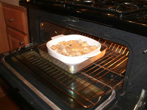 Ahora que haya terminado la mezcla, colocar el budín de pan en el horno durante 45 minutos. Ahora es tiempo de espera.