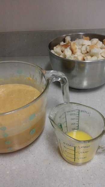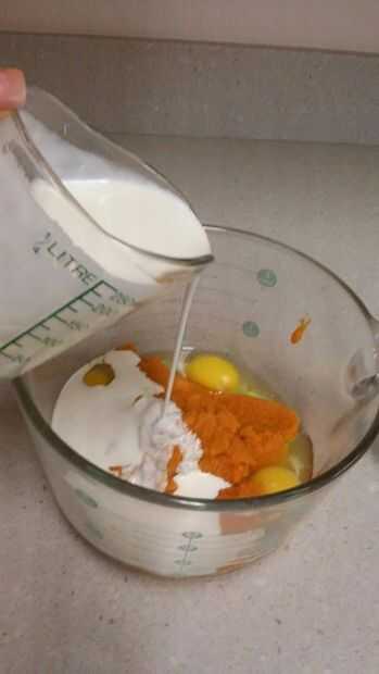 En un aparte de la mezcla del tazón de fuente, se mezclan los huevos, calabaza, crema, azúcares, sal, Ron, canela.