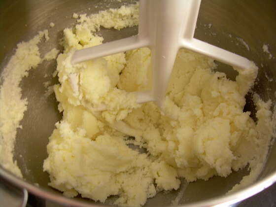 Crema de leche azúcar y la mantequilla Junta hasta bien con crema en una batidora con el accesorio batidor o paleta, a mano o con una batidora de mano.