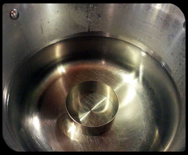 Llene la olla hasta la mitad con agua y colocar el molde del anillo (o rack) en la olla. Coloque la olla a fuego medio. No es necesario hervir el agua, nos estamos cociendo al vapor, no hirviendo el pudín. :)