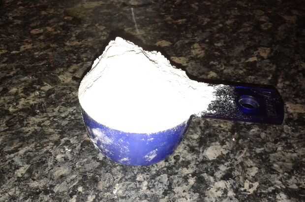 • 3/4 taza de harina (o media taza colmada como en la imagen)