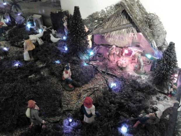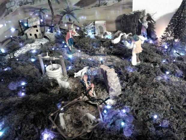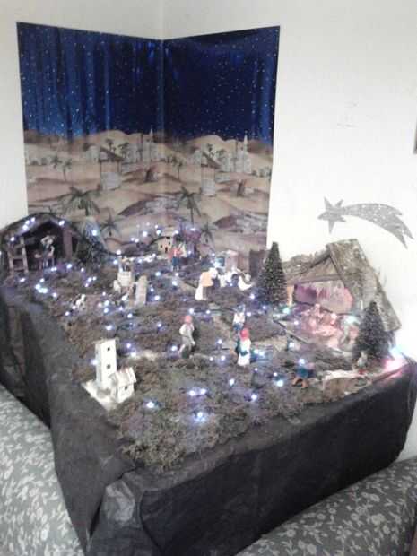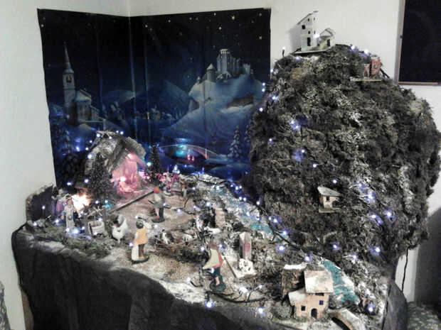 No hay mucho que explicar aquí porque es simplemente una composición de estatuas, casas, musgo y grava. Usé papel de aluminio para hacer el río y la estrella. El papel este año no tiene nada que ver con el pueblo, lo sé, pero me di cuenta que era el desierto sólo después compré it... probablemente no es tan buena como la aldea de Belén que hice el año pasado pero me deja saber lo que piensas de todos modos! La última foto es la que hice el año pasado. Es una montaña bastante grande hecho con periódicos cubiertas de musgo. La nieve se hace simplemente con harina :)
