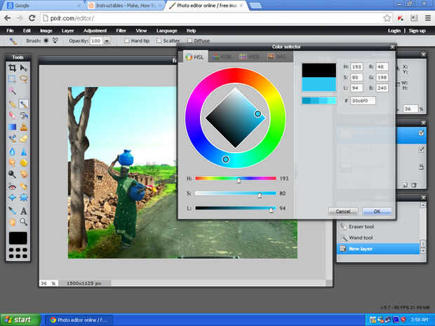 Aplicación del color azul al cielo