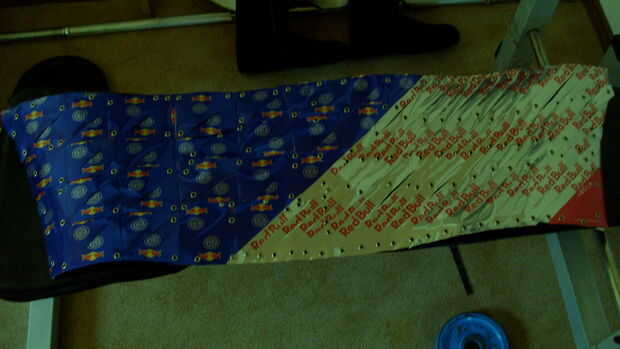 Necesitaba unos 2800 ojales para conectar todas las piezas... aquí se puede apreciar una parte del traje que cubre el torso...