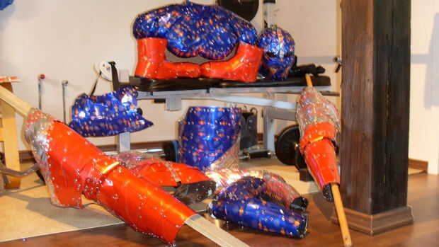 2 patas: las piezas para las piernas se conectan en el backsite con cremalleras. Encajan muy bien en los muslos (trabajo exactamente con los diámetros) así que se no deslizan apagado.