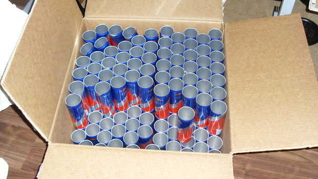 En segundo lugar uno: algunas latas son hechas de aluminio, otros se producen fuera de hoja de lata (coca-cola). Red Bull utiliza aluminio. La ventaja del aluminio es que no tenga ninguna corrosión (moho) en el borde de corte y su mucho más fácil de cortar y de perforar!