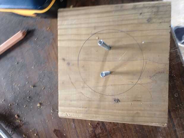 Rastrear su lata de aceite y perfore 2 agujeros, hacer lo mismo en el poder. Sus pernos a través del hilo de rosca y sus tuercas en. Las tuercas no debe ir el momento.