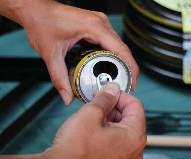Retire la lengüeta de la lata vacía que debe transformarse en la regadera.