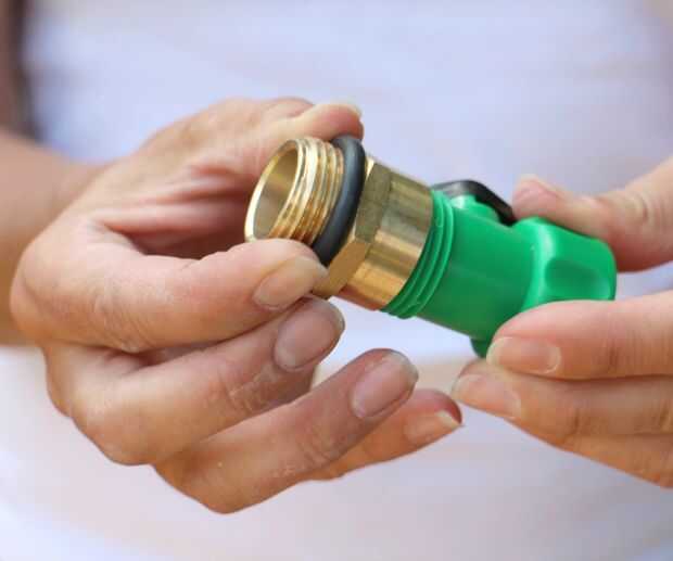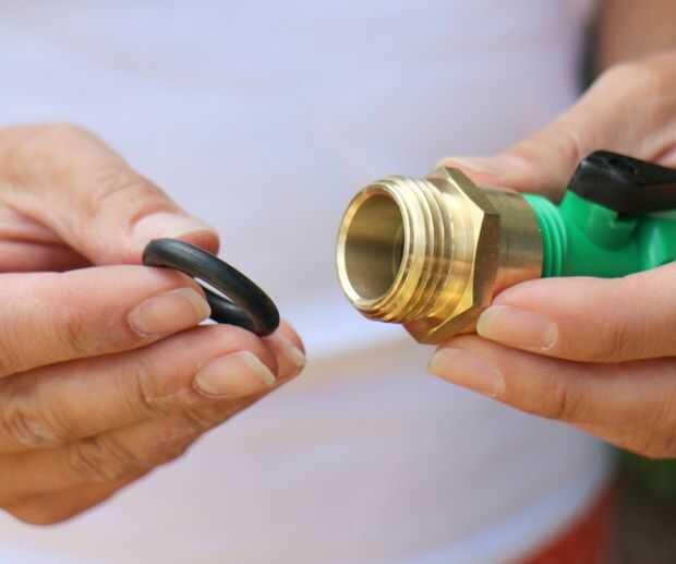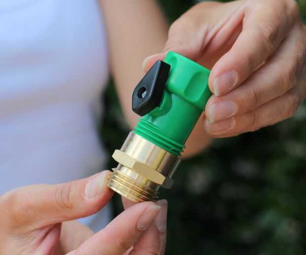 Poner la lata al lado y agarrar los conectores de la manguera y junta tórica. Los dos atornillados juntos, colocar con la válvula en la parte superior. El anillo va en el extremo roscado macho de la no-válvula de montaje como en la foto.