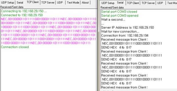 Paso 4: Cuando TCP cliente envía paquetes específicos a TCP del servidor y receptor IR
