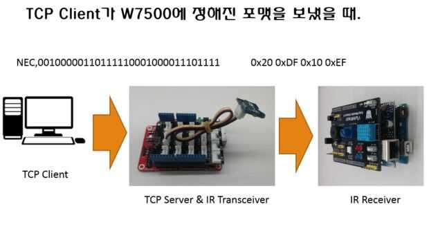 W7500 (TCP del servidor y receptor IR) pueden recibir el paquete correcto y enviar el código IR invertido.