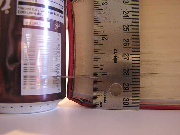 Tomando el libro y la hoja de afeitar, marcar un surco varias veces alrededor de la base de la lata, 7/8" para arriba.