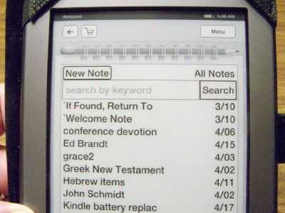 aplicación Bloc de notas. Cualquier información sobre hacer debe ser golpeado ligeramente hacia fuera una letra a la vez con el teclado en pantalla que aparece cada vez que toque para obtener un cursor en cualquier cuadro para introducir texto en cualquier aplicación. (Ver la foto para el paso 4 ver el teclado otra vez). Una nota en esta aplicación puede almacenar hasta 3.000 o menos caracteres. Notas se suponen que son recuperables en un equipo cuando el Kindle está conectado por el cable. No he hecho eso, sin embargo. La ayuda de la aplicación dicen que archivo a fin de recuperar el documento. Lamentablemente, no puedo copiar y pegar en el Kindle.