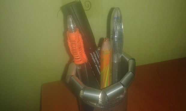 bolsas (las que te dan para llevar tus compras casa) realmente puede hacer rollos de gran herramienta o un lápiz. Este formato de almacenamiento es grande en que se pueden fácilmente agrupar todo sin mucho molestia y también fácilmente abrir y todos