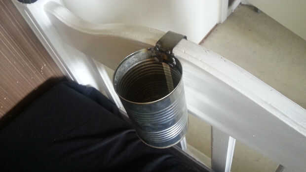 Soldando un pequeño trozo de metal hasta el borde de la lata (el borde ligeramente más grueso) luego se doblan hacia abajo de 90 grados Búscate un soporte de cerveza impresionante que se puede colocar en el borde del material.