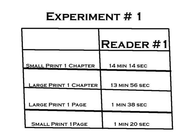 Este experimento no funcionó porque la segunda vez leer algo, no importa si es pequeño o grande imprimir, será más rápido porque está familiarizado con el texto.