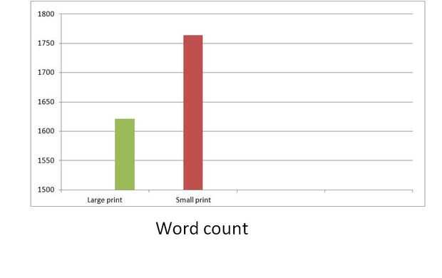 Hubo palabras de impresión grande 1621 palabras 1764 y leer la letra pequeña. Lo que significa que 143 más letra pequeña palabras fueron leídas.