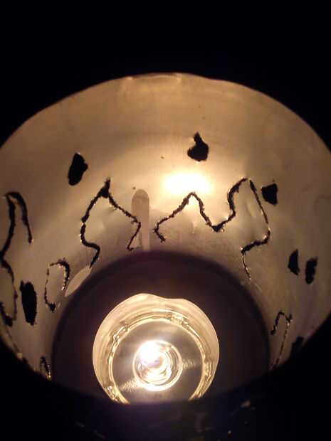 Así que lo que hice fue usar Vieja cerveza latas en aluminio para el material, mi dremel para cortar, tallar y pulir el diseño y papel y pluma para subir con los diseños. Para aplanar hacia fuera el fondo utilicé un fondo plano madera mojito sello (no puede recordar la palabra real para él en el momento) y aplastado a la mitad para caber una luz de té, dejando el resto como es que el aluminio de la calefacción para arriba de la zona en la parte inferior. Cuando encendí la lata la primera vez que me di cuenta que necesitaba más peso así que calienta toda la luz del té y derrama la cera en la parte inferior para obtener algo de peso extra. Funciona a la perfección y aún obtener un surco permanente para mantener la luz en su lugar.