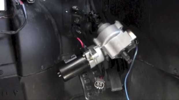 Hay un tercer soporte que se atornille a la el soporte que el regulador de tensión está atornillado al. Esta foto es la unidad de dirección asistida electrónica atornillada al volante menor soporte de eje que se mantenga la unidad de manejo de energía.