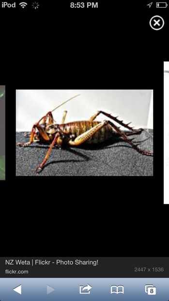 Una vez que había encontrado mi gatito sentado en la puerta sosteniendo un weta. Fue un vivo pero él compró adentro y había golpeado hasta que murió. La lápida está todavía en mi jardín.