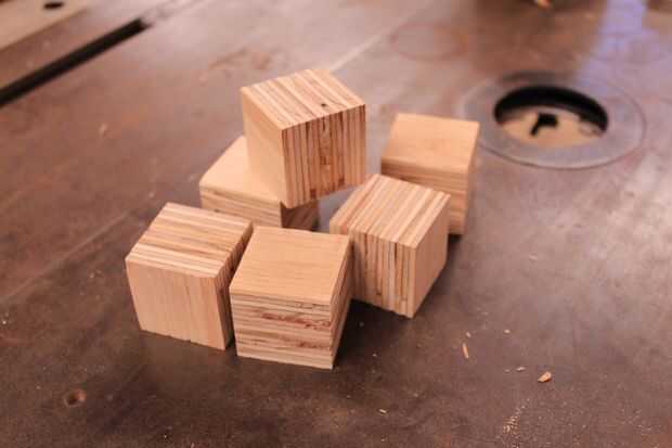 para hacer de 38 mm x 38 mm x 38 mm acabo pegadas dos tableros de contrachapado de 19mm y cortarlas a cuadrado bloxs