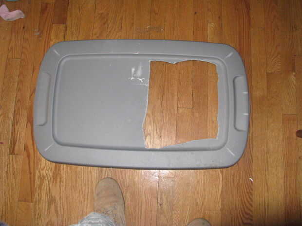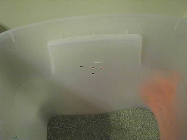 Me corte un orificio en la parte superior de los gatos entrar, lijar los bordes y algunos agujeros de ventilación perforados.
