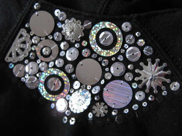 Coser pequeñas lentejuelas alrededor del borde de la plantilla.