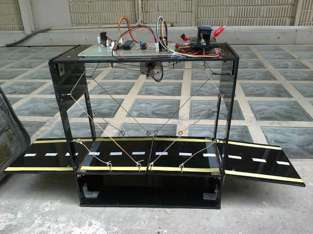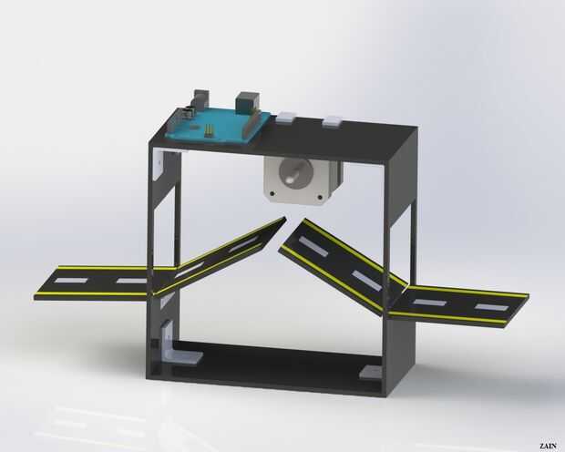 Londres puente basculante modelo fácilmente usando Arduino UNO, sensores IR y motor paso a paso. La estructura del modelo está hecha de la hoja de acrílico. Hemos utilizado el motor paso a paso y cuerdas para mover el puente hacia arriba y hacia abajo, en el paso de un cierto cuerpo. Por otra parte, el uln2003a-puente en H (circuito eléctrico) ha sido diseñado para controlar la dirección del motor (en sentido horario y antihorario). Su modelo 3-Dimentional ha sido diseñado utilizando el software "SOLIDWORKS".