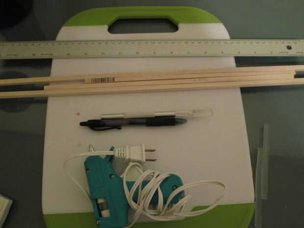 • Madera de balsa de ¼ x 1/4 pulgada. Este proyecto utiliza cinco palos largos de 3 pies