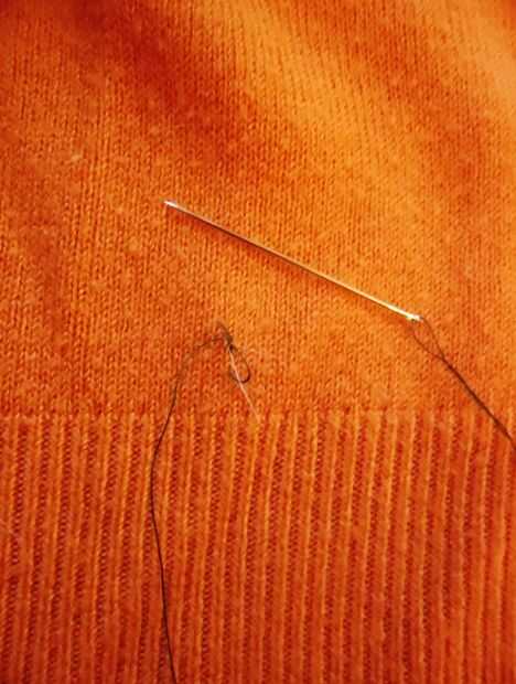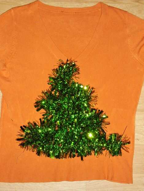 Para hacer el árbol, establecido el oropel en un patrón de zig-zag apretado a lo largo de la parte delantera del puente. El principio de la línea, coser un par de puntadas en la tela por debajo. A continuación, envuelva el hilo alrededor de la malla y coser abajo. Para ello en cada curva de la malla.