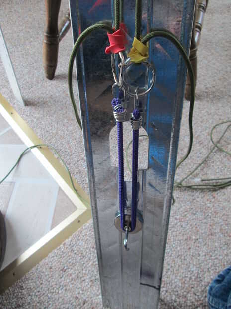 Entonces puse un mini bungee en; con un leve tirón pongo el bungee alrededor del gancho magnético de fondo.