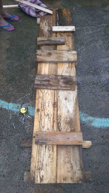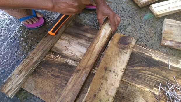 Una vez terminado el primer lado, la estructura se convierte en el otro lado y pedazos de madera se añadirá otra vez para cubrir los huecos y hacer la estructura más sólida.