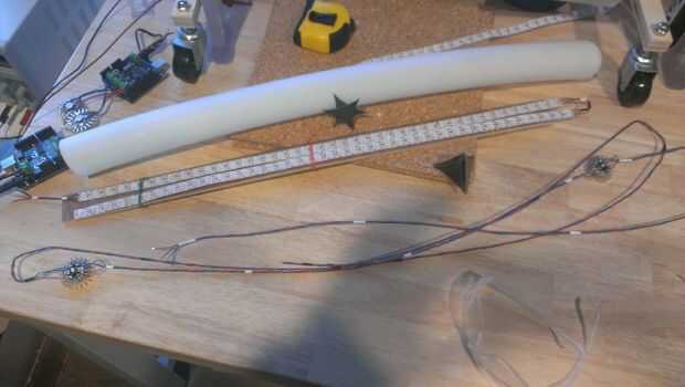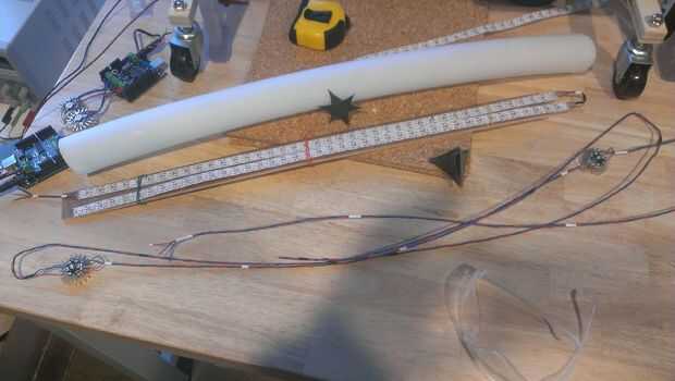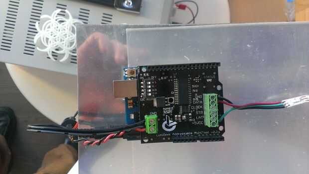 Estoy usando la Arduino UNO con el escudo de 1xAddressable de LumiGeek ejecutan una sola tira de LED RGB direccionable. Corté dos 2 32 pixel tiras y soldadas en serie para simular tráfico en dirección norte y dirección sur. Estoy compartiendo información adicional sobre el Arduino LumiGeek instalación bajo un Instructable separado; para obtener información adicional en LumiGeek ir a LumiGeek.com o https://www.facebook.com/lumigeek.