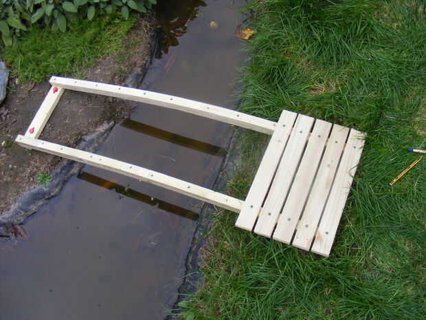 Terminado, usted puede notar un poco de rebote en el marco, pero esto debe establecerse como la madera resiste. Voy a intentar actualizar cuando termina el jardín y el puente ha resistido un poco.