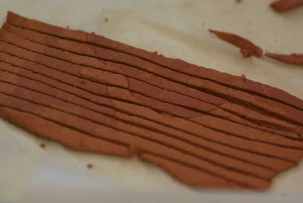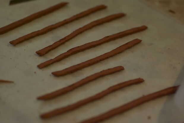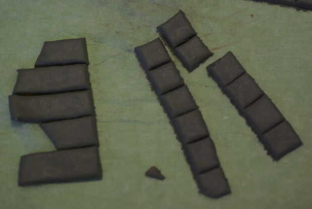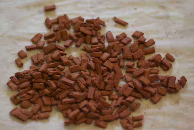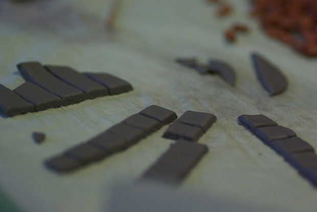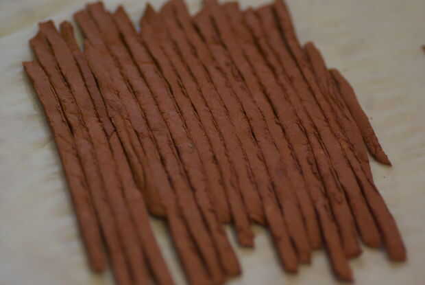 Utilice un cuchillo de la manía para cortar las piezas y poner algunos