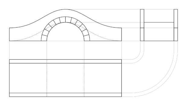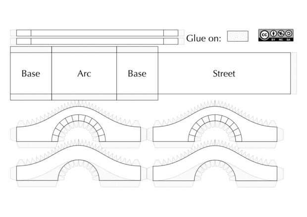 La parte difícil del proyecto fue calcular la longitud de la parte superior del parapeto y de la calle, porque fue hecho con una curva de Bézier. Pero encontré algo de código C que hizo solo que, y escribí un pequeño programa para calcular la longitud. La longitud del arco era muy fácil, sin embargo. (¿Quién dijo pi?)