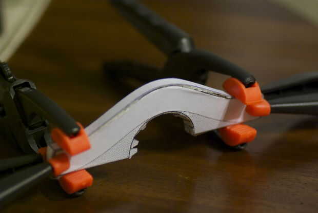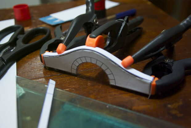 Utiliza dos tipos de colas una cola de palo para pegar rápido y preparar las piezas para el pegamento blanco. Uno de los lados de la pared en la parte superior pegar primero el otro pegue con cola blanca. Sujete las piezas con pinzas.