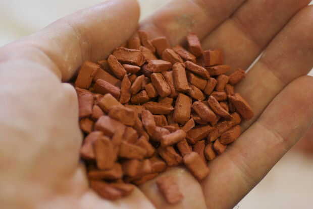 Se trata de dos colores: blanco y terracota. Quería tener un puente de ladrillo, con algunas incrustaciones de piedra (piedra angular y azulejos) así que tuve que color blanco Das con algún negro para convertirlo en gris.