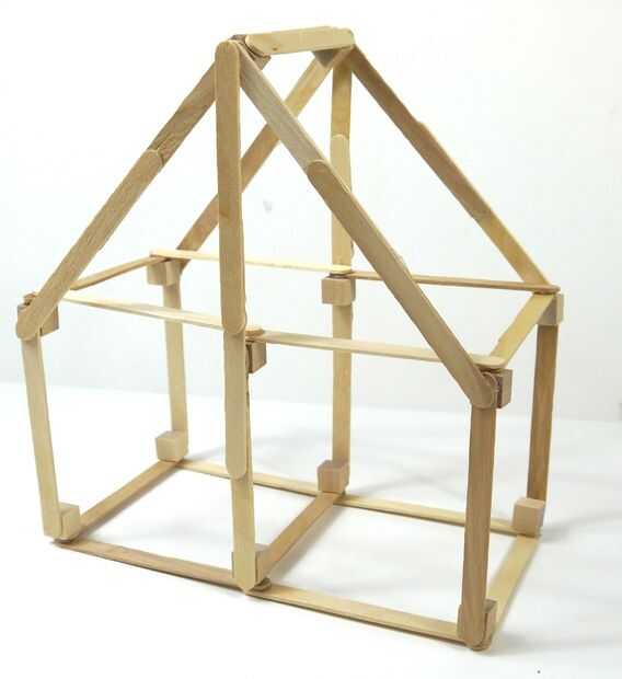 Otra alternativa es el marco de la casa. Aunque no confiar pesadamente en cerchas para su robustez, se muestra la idea básica de qué madera se ve como en el marco de las casas reales.