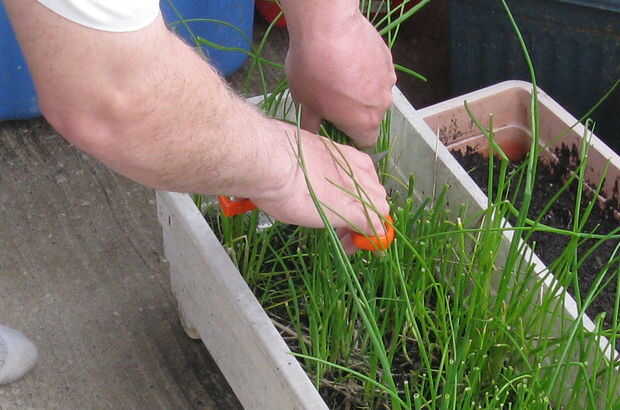 Simplemente agarra un manojo y cortar desde la raíz con un par de tijeras y lavarlos.