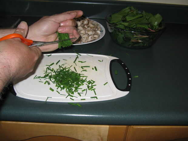 El siguiente ingrediente es cebollino fresco, crezco mis cebolletas en una jardinera de caja así que puedo llevarlas conmigo si me mudo o conseguir que empezar a principios de la primavera.
