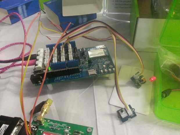 Componente de hardware: Intel Edison tablero, cerradura electromagnética, Kit GSM, relé, pulsadores Dev Kit: Kit de Grove, cables de puente