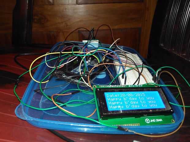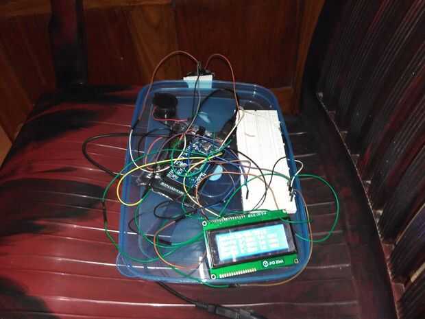 Mantener el sistema en un lugar tal que en la foto de arriba. En el programa el número de caracteres en el mensaje (incluyendo espacios) debe ser igual o menos de 20 en 20 x 4 LCD y menor o igual a 16 en 16 x 2 LCD.