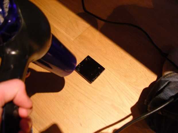 (he hecho un soporte improvisado con varias abrazaderas para no tener que mantener el secador de pelo)