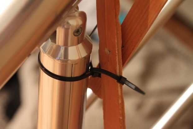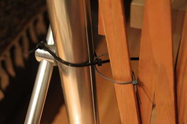 Añadir 2 tiras en la barandilla, a la misma altura donde envuelve el plástico en el soporte. Los que puede apretar todo el camino.