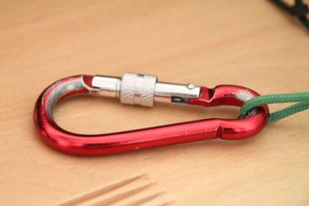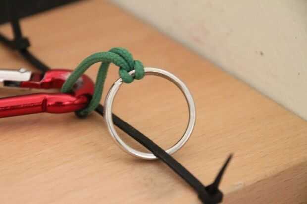 El llavero de mosquetón nos permite hacer eso. Correa para el llavero en la escalera, y ahora usted puede bloquear la puerta.