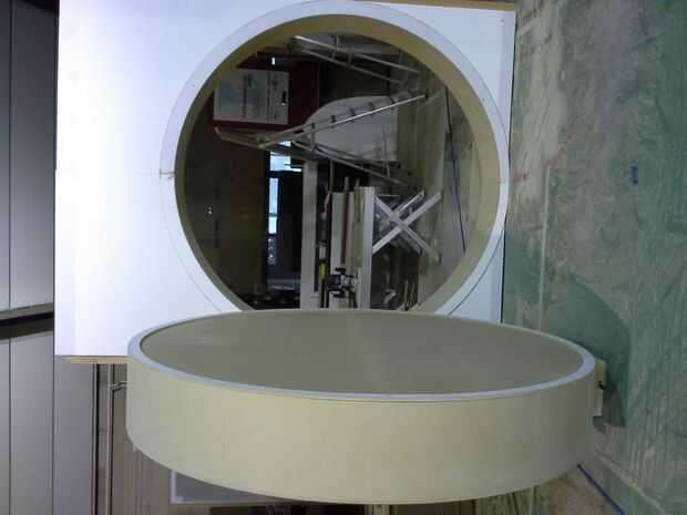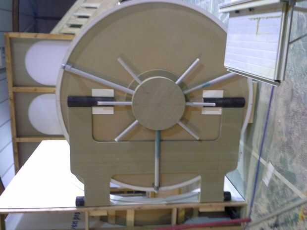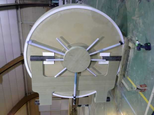 cortar la puerta de 2 piezas de mdf (18 mm) por lo que necesitábamos 4 mitad círculos. unir las piezas junto con fichas de dominó. piezas de madera fueron atornillados entre los 2 círculos y el conjunto puerta atornillada cierre con el mdf flexible en el lado.
