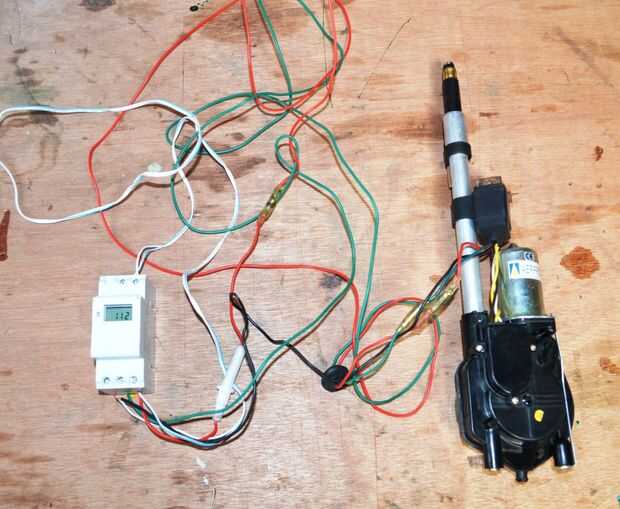 3. Si tienes todo conectado-para arriba correctamente, entonces se retrae cuando el temporizador está en la antena, y cuando el temporizador está apagado se extenderá.